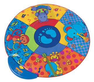 This cushioned musical mat by Jolly Jumper plays 3 fun music modes at baby's touch. The dial feature allows you to select the tone. Baby learns cause and effect-touch the toy and the music starts. Great for using under a doorway jumper. Jumper and batteries are not included.