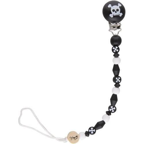Fashionably Attached! Bink Link - The Original wood pacifier clip created in nostalgic and modern American designs.Skully includes fun skull and crossbones and is perfect for the little one with attitude.