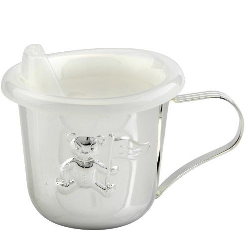 Introduce a bit of sophistication with this silver plated teddy bear keepsake cup with a sippy lid especially for baby