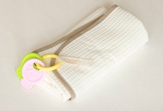 The Loopi Blanket is a 30" x 40" blanket made of 100% organic pique. The Loopi Blanket has an organic cotton velcro loop that will hold any light toy or pacifier so they never get lost.Organic cotton pique fabric is known for its unique ability to remain airy, yet warm, due to its raised woven thread. Colors come in cream with piping in Red, Blue or Natural Beige.
